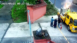 从彭水水电公司纸厂沟库房的大门外传来,一辆正在执行道路划线作业的工程车突然燃起熊熊大火,该公司库房主管袁艺迅速组织和带领库房内的值班人员携带灭火器赶赴现场。
