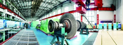 沿着红色大道,走进苏式建筑的办公楼,踩着水磨石楼梯,进入连廊,一件件老物件摆放在连廊区的展柜里:二十世纪五六十年代的操作证、工作证、洗澡证等各类证件、饭盒,以及印有俄文的设备铭牌都在向参观者讲述着过去的故事。走过展区,经过电力文化长廊就进入“汽轮机检修实操间”,也就是过去的设备车间。5台大型汽轮机组静静地躺在车间里。大型转子以及印有俄文的1号汽轮发电机还原着当时车间的原貌。操作间外地面上刻着“中苏友好”“自力更生”等标语被玻璃罩保护着,整个车间从中苏共建的1号机组到自建的4号机组和地面的标语刻字,反映新中国成立初期苏联的历史援建和在没有外援的情况下自力更生自建机组的发展过程。一个车间还原一段历史,再现了二十世纪五六十年代的历史变迁与电力文化特色。