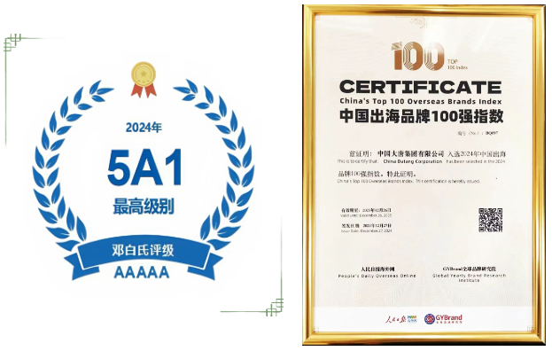 凭借卓越表现,大唐海投载誉颇丰。在企业信用领域,连续4年获得邓白氏权威评级,2024年更是凭借健全的风险管理体系、稳定的财务表现与创新发展动能,荣膺5A1最高级别,成为行业信用标杆。在品牌影响力维度,成功入选2024年中国出海品牌100强指数,彰显其在国际市场的强劲竞争力与品牌号召力。