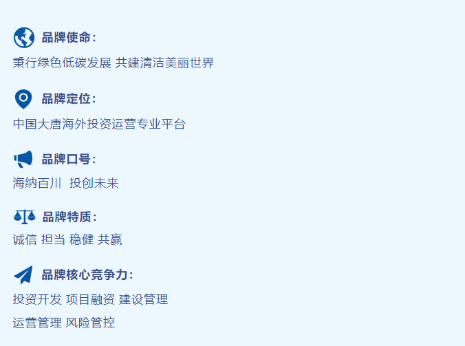 品牌建设聚焦专业化与国际化,以“海纳百川 投创未来”为行动纲领,在互利共赢中促进了国际产能合作,实现经济、环境、社会价值共生,为助推所在国经济民生发展作出积极贡献,持续提升“中国大唐”品牌的全球公信力与行业影响力,彰显中央企业高质量共建“一带一路”的责任担当。