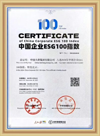 本网讯 近日,在人民日报海外网与中华环保联合会联合主办的第二届中国品牌形象海外传播论坛暨2024中国企业ESG蓝皮书发布会上,中国大唐入选“2024年中国企业ESG100指数”。