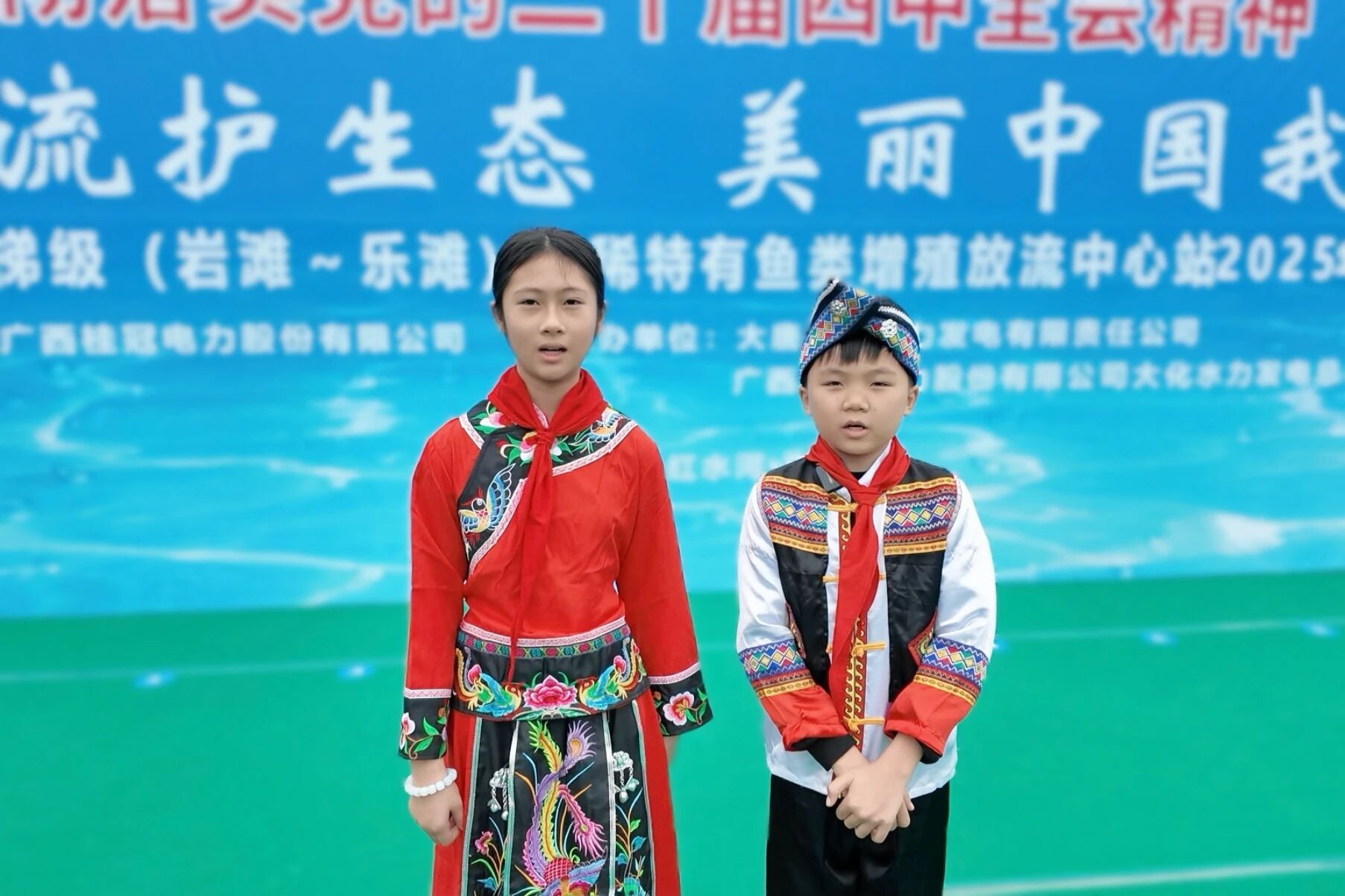 “红水河是我的家乡,能参加放流活动特别有意义!” 岩滩中心小学五年级学生陆梓涵端着装鱼水盆,认真地将鱼苗倒入溜槽,眼神里满是对生态保护的期待,“希望大家都来保护鱼类、守护我们的生态环境。”