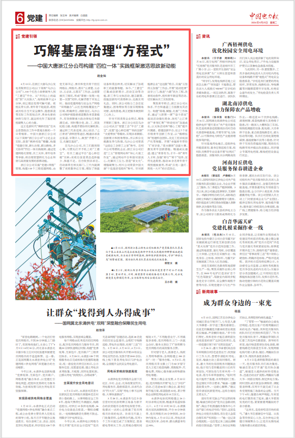 [中国电力报]2026年4月21日-6版巧解基层治理“方程式” ——中国大唐浙江分公司构建“四位一体”实践框架激活思政新动能