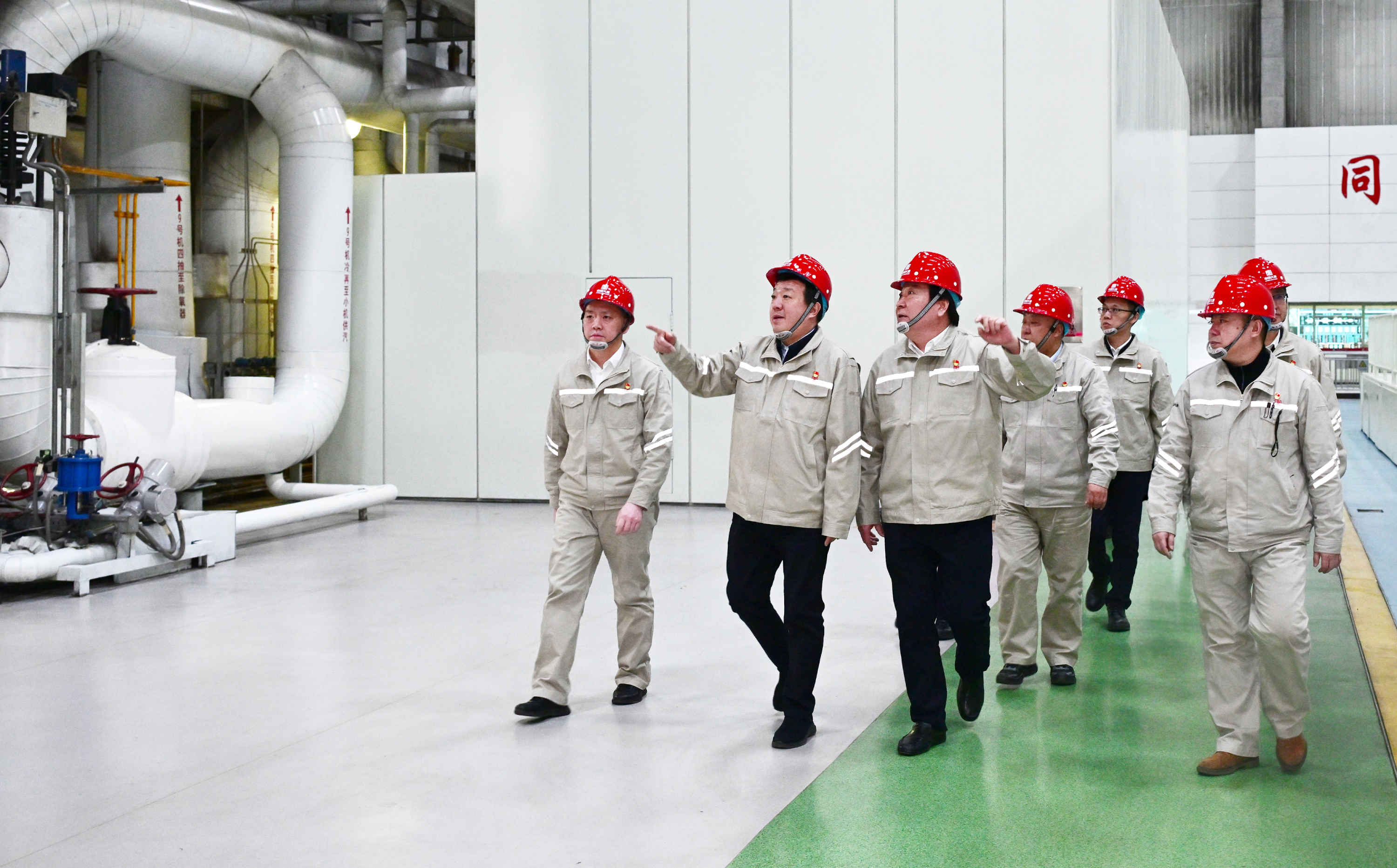 吕军先后来到托克托发电公司厂展室、智慧能源中央控制中心、五期生产现场、智慧燃料管控中心,详细了解企业发展历程、绿色转型、经营管理、保暖保供、安全生产等情况,并与一线职工亲切交谈。